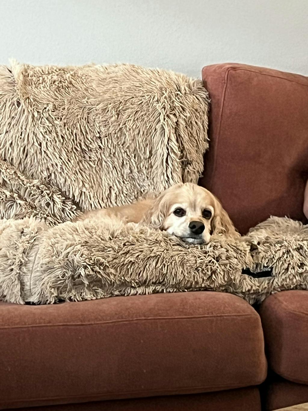 My Great Pyrenees loves sleeping on a double sized chair in my bedroom. His new couch cover is perfect for protecting the chair’s fabric and giving him a great bed to snuggle in.