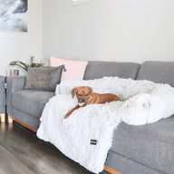 My Great Pyrenees loves sleeping on a double sized chair in my bedroom. His new couch cover is perfect for protecting the chair’s fabric and giving him a great bed to snuggle in.