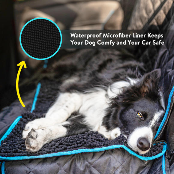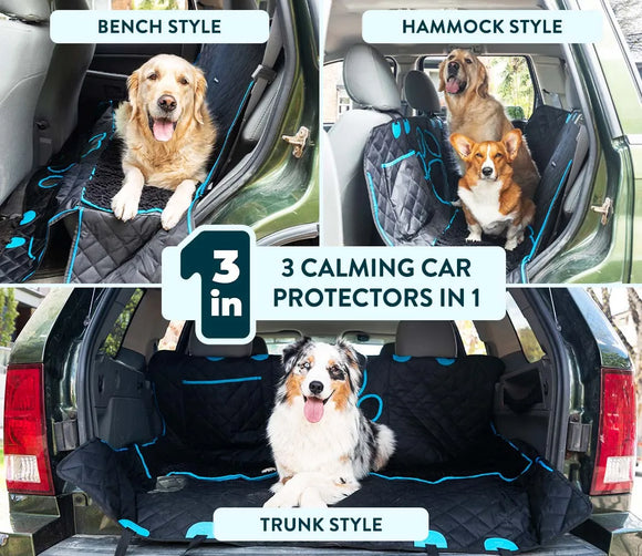 The World’s comfiest, most innovative, 100% waterproof, 3 in 1 Calming Car Protector. Guaranteed- Fully Protects your car while keeping your dog safe & extra comfy!